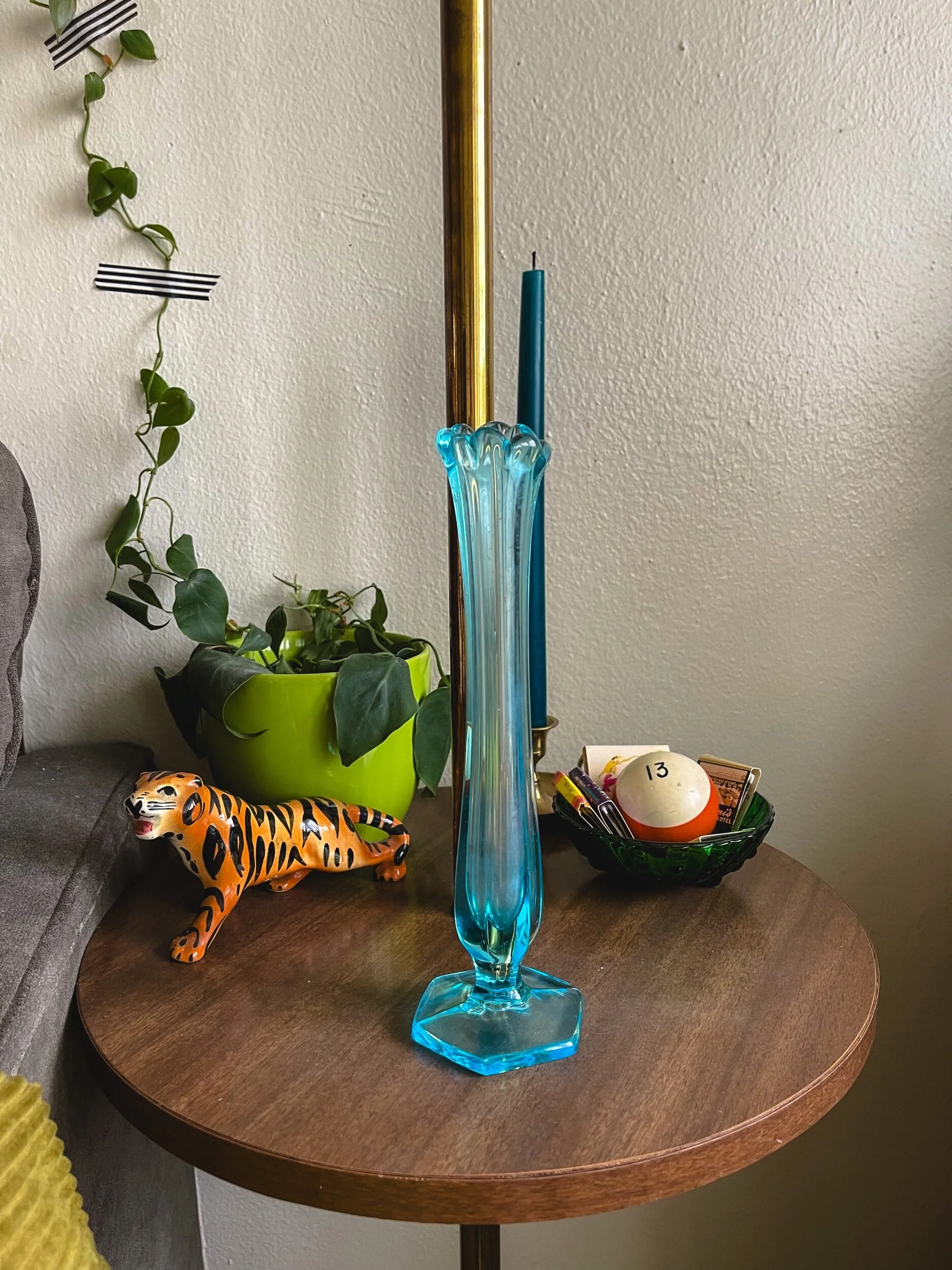 27 STREET STUDIO › Vintage Blue Glass Swung Vase Image 1 of 2 Image 2 of 2 Vintage Blue Glass Swung Vase $38.00 Only 1 available Gorgeous vintage blue glass swung vase ✿ Add To Cart Added! Gorgeous vintage blue glass swung vase ✿